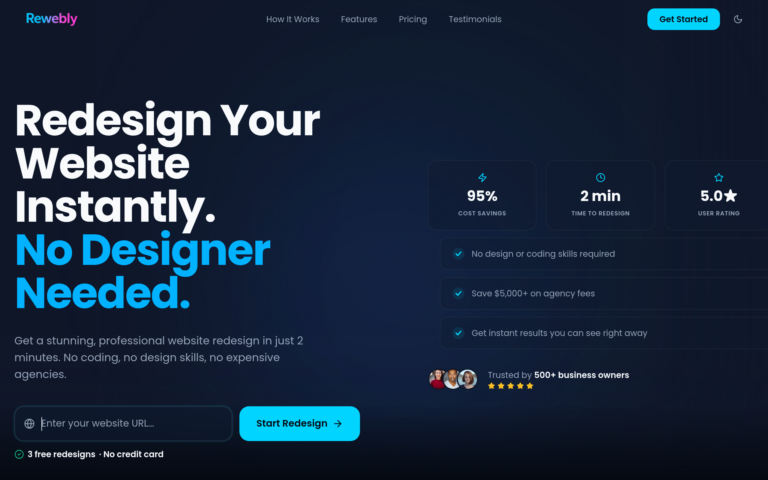 Paste your URL and get a professional, agency-quality rebuild in minutes – complete with clean, deployable code, zero design skills, massive cost and time savings, and results your visitors will notice.